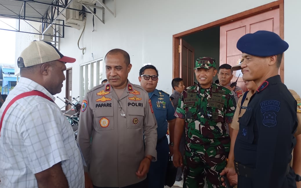Timika (suaramimika) – Kapolda Papua Tengah, Brigjen Pol Alfred Papare, SIK meninjau langsung pengamanan pleno rekapitulasi hasil perhitungan perolehan suara dan penetapan hasil Pilkada di Kabupaten Mimika pada Senin (9/12/2024).