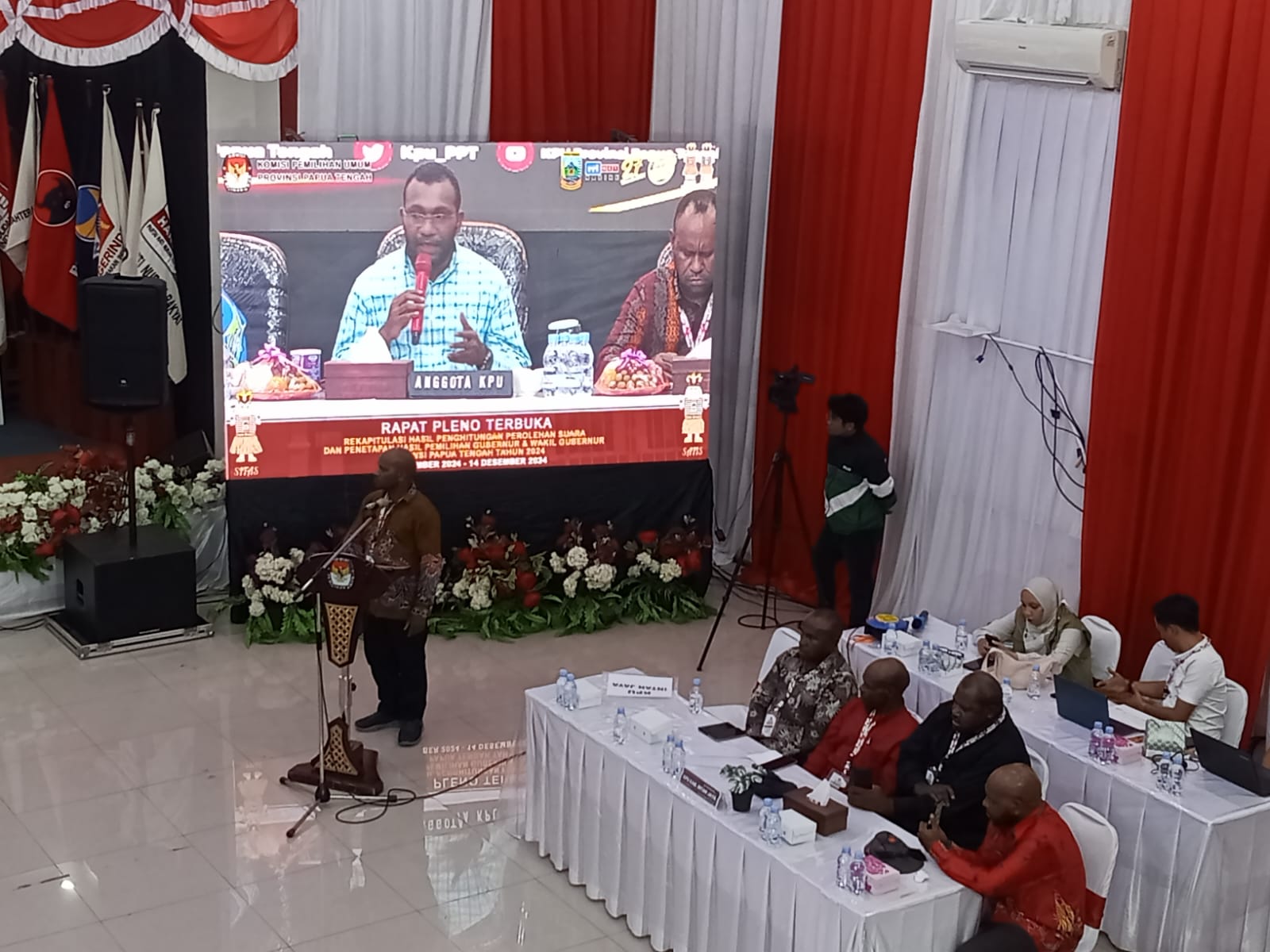 Pleno rekapitulasi ini berlangsung di aula RRI, Nabire, Papua Tengah pada Senin (16/12/2024).