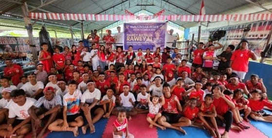 Anggota DPR Papua Tengah, Nancy Natalia Raweyai saat di Goldy Camp Muay Thai Mimika bersama para atlit dan juga pelatih.