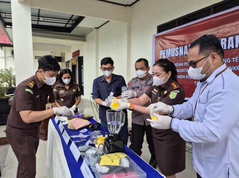 Sejumlah barang bukti tersebut dimusnahkan dengan cara dibakar, diblender, dan dihancurkan sesuai jenis dan karakteristik masing-masing, sehingga tidak dapat digunakan kembali.