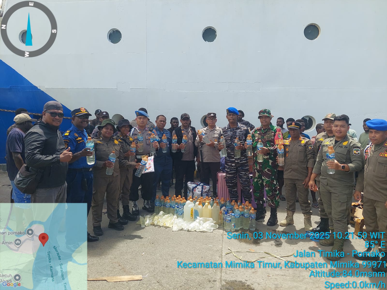 Timika (suaramimika.com) – Untuk menciptakan keamanan dan ketertiban di Mimika, maka aparat gabungan TNI dan Polri bersama Satpol PP serta instansi terkait melaksanakan kegiatan pengamanan dan razia saat KM Tatamailau bersandar di Pelabuhan Pomako pada Senin (3/11/2025).
