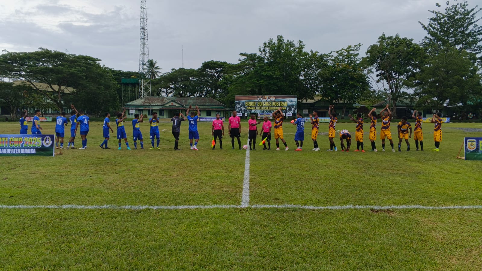 Timika (suaramimika.com) – Pertandingan pembuka Turnamen Sepak Bola Bupati Cup U-22 babak Grup A berlangsung di lapangan Brigif 20/IJK, Minggu (30/11/2025).