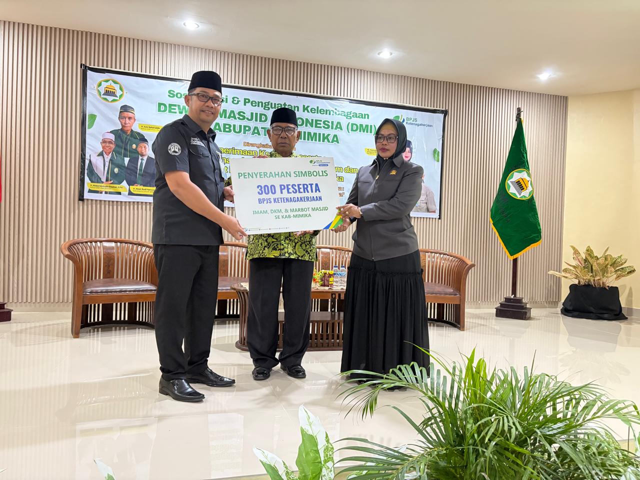 Di awal Tahun 2026, kepesertaan BPJS Ketenagakerjaan diberikan secara simbolis kepada 300 pengurus masjid, imam dan marbot pada kegiatan sosialisasi dan penguatan kapasitas yang digelar oleh Dewan Masjid Indonesia (DMI) Mimika, Rabu (14/1/2026) di Ballroom Cenderawasih Hotel Serayu Timika.