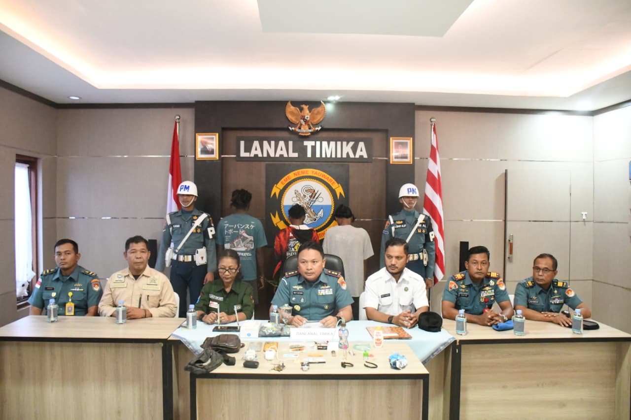 Dalam operasi tersebut, Lanal Timika bersama aparat gabungan berhasil mengamankan tiga orang pelaku masing-masing berinisial AS (38), AJA (37), dan RFB (36).